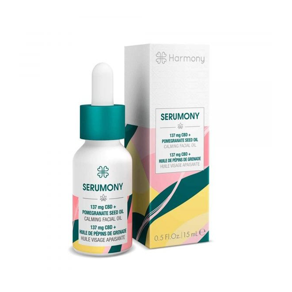 Harmony’s antioxidant-rich facial oil, Serumony, contains a rich concentration of CBD, infused in a nourishing blend of hemp seed oil, cold-pressed pomegranate seed oil and safflower oil, to calm, soothe and boost the skin’s natural radiance.